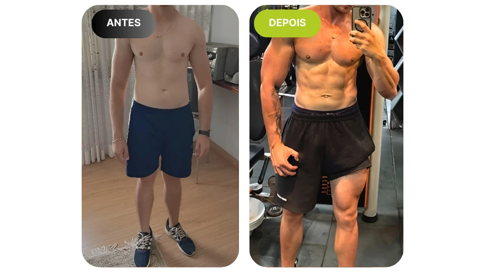 “Depois de seguir o plano do Dr. Guilherme, ganhei massa muscular de forma impressionante em 4 meses. A mudança foi muito além da estética, minha autoestima e força física deram um salto!”